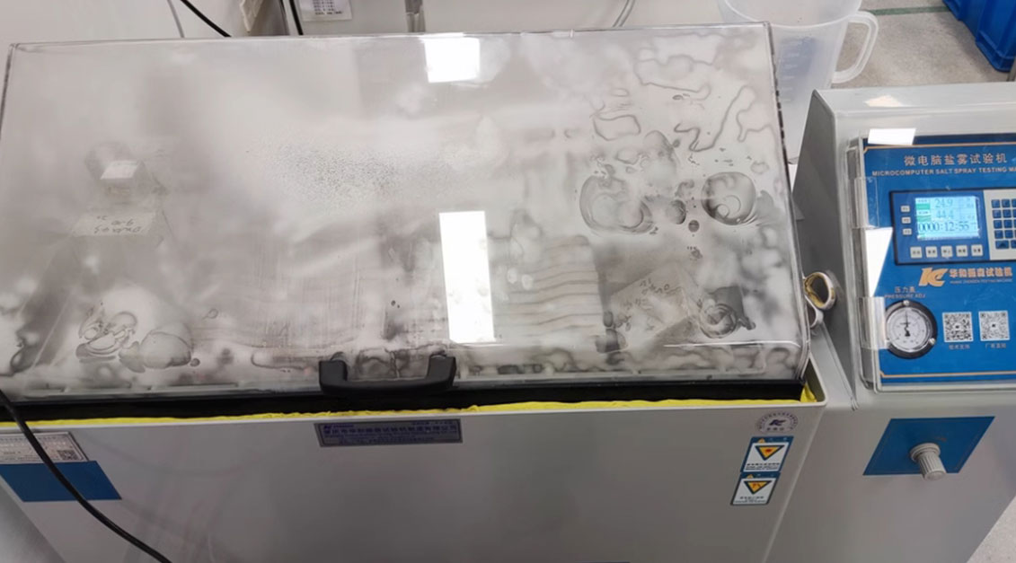 Meaisín tástála spraeála salann    Trí thimpeallachtaí crua a insamhladh ar nós atmaisféar mara agus truailliú tionsclaíoch, luathaítear cumas frith-meirge na cóireála dromchla scriú (cosúil le leictreaphlátála agus sciath) chun a iontaofacht fhadtéarmach a chinntiú i gcásanna úsáide fíor-domhain.